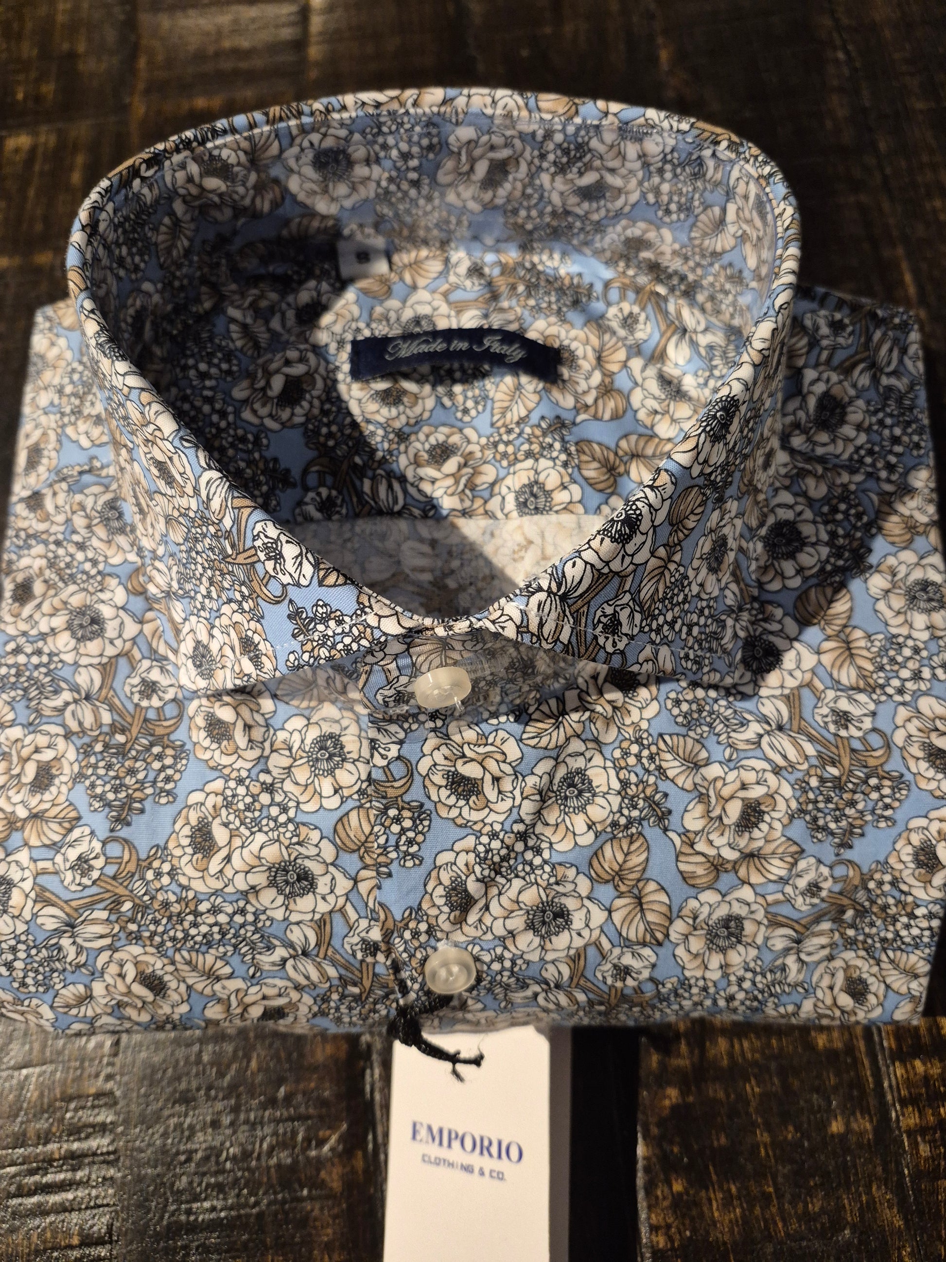 Hemd Emporio Slim-Fit, Made in Italy, Stylisch, Modern im Florealen Design in hellblau weiss