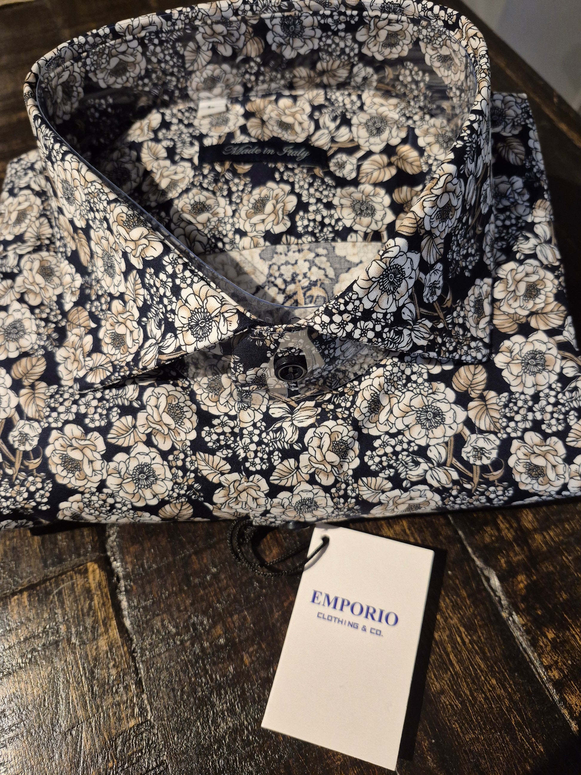Hemd Emporio Slim-Fit, Made in Italy, Stylisch,Modern im Florealen DEsign in schwarz weiss