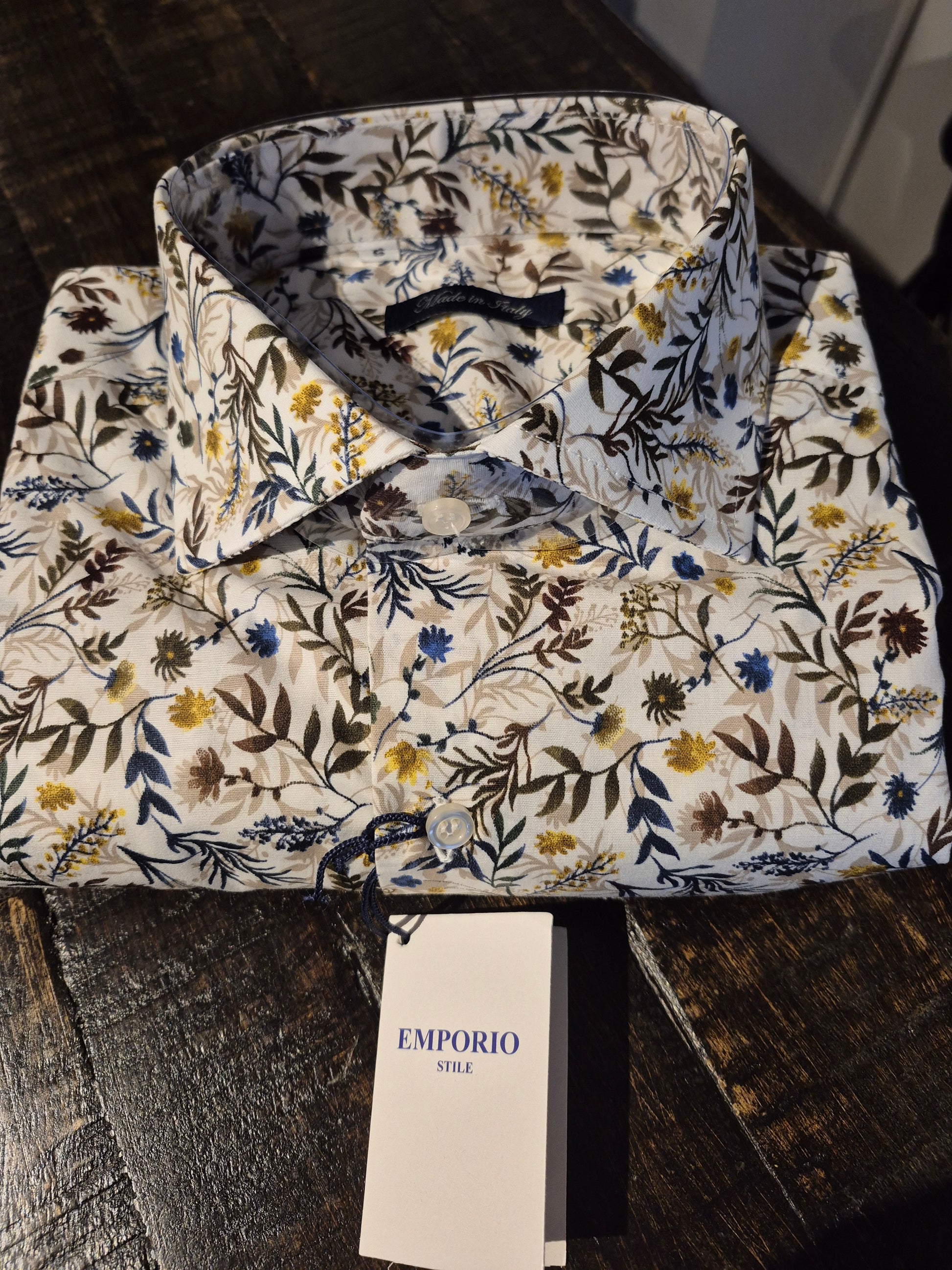 Hemd Emporio Slim-Fit, Made in Italy, Stylisch, Modern im Blätter Design weiss mit braun grün blau