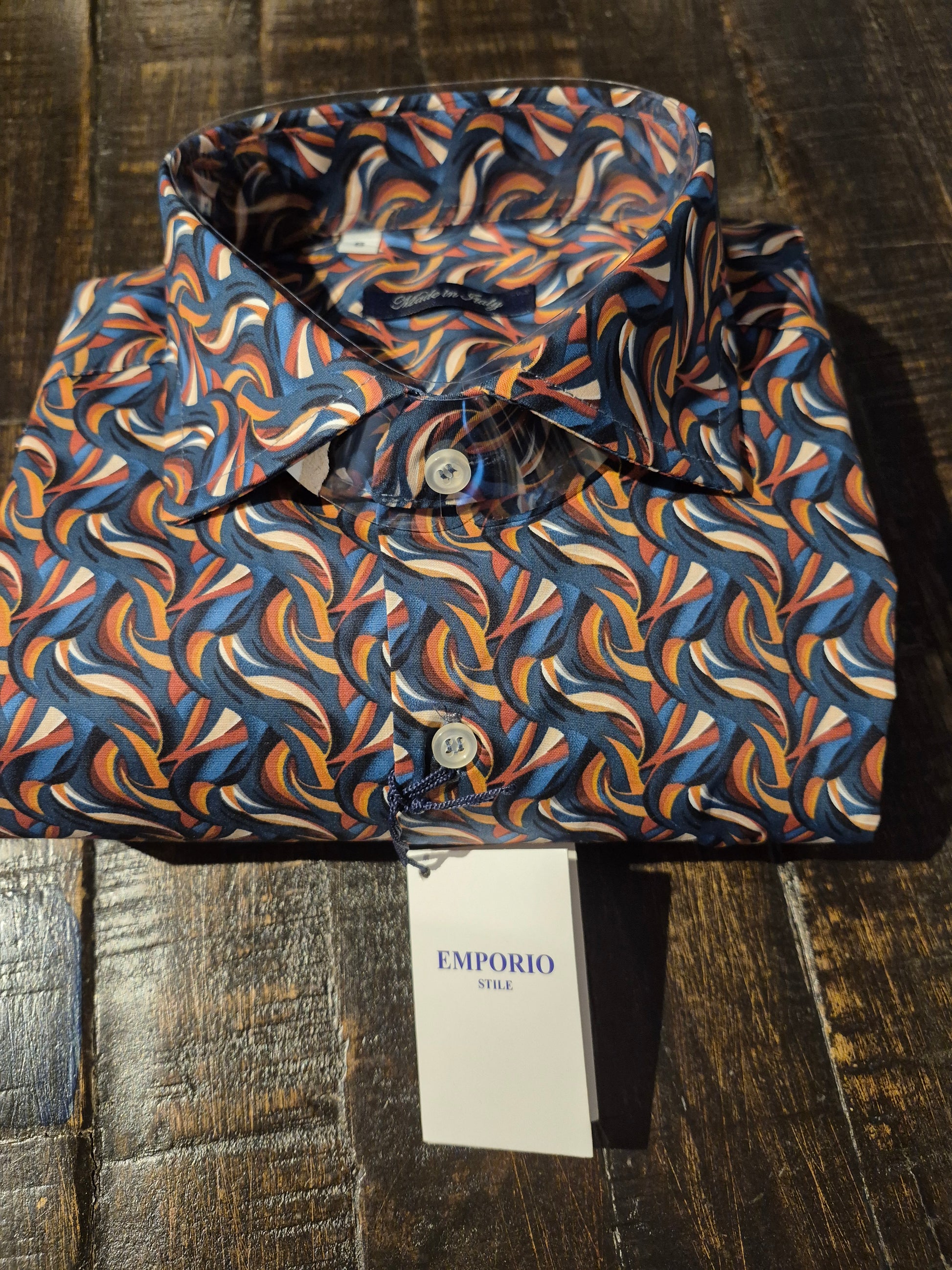 Hemd Emporio Slim-Fit, Made in Italy, Stylisch Modern im geometrischem Design orange petroltöne weiss