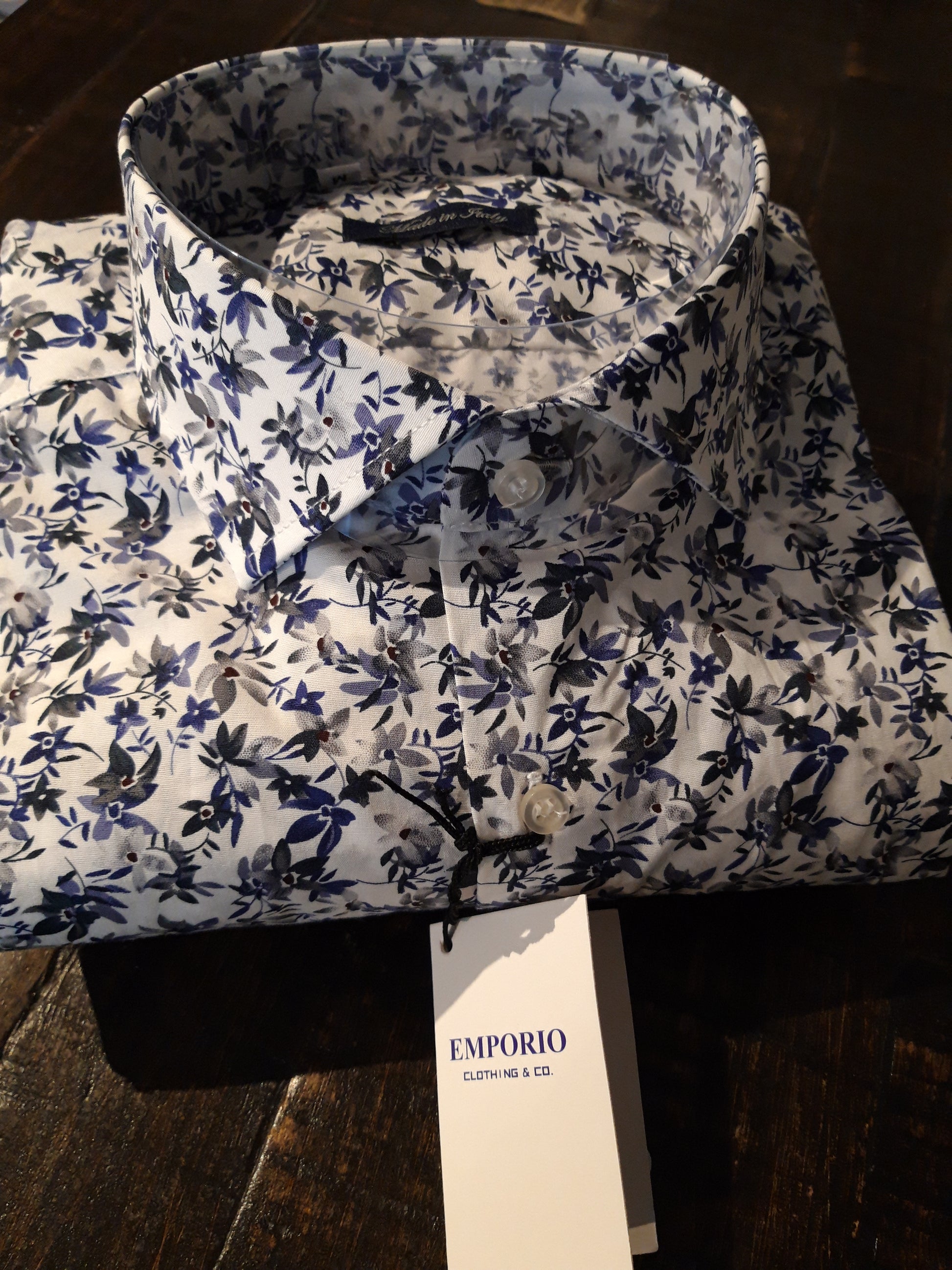 Hemd Emporio, Slim-Fit, Made in Italy, Stylisch Modern im Florealen Design Blau Weiss