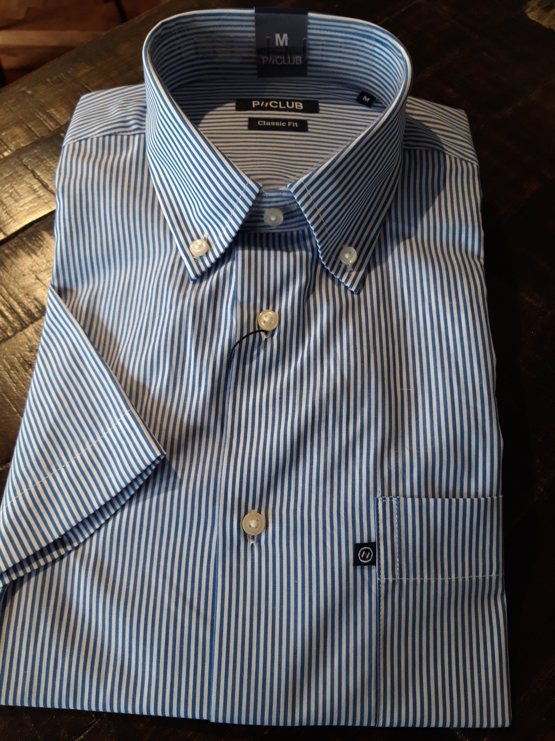 Hemd P-Club, kurz-Arm, Regular-Fit, Button-down, mit eine praktische Brusttasche, feines dezentes Streifenmuster