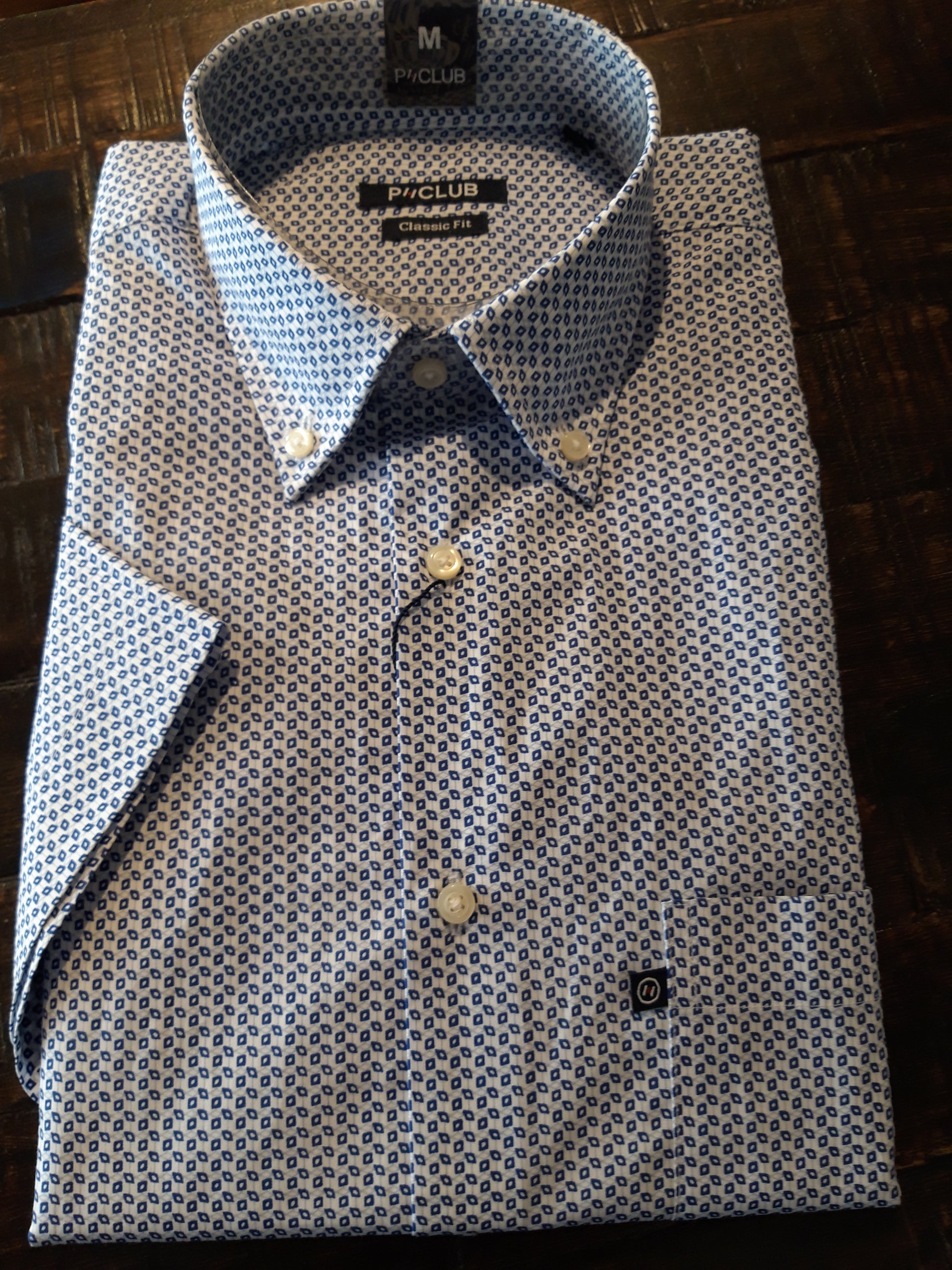 Hemd P-Club, kurz-Arm, Regular-Fit, Button-down, mit eine praktische Brusttasche , feiner Print Design Blau Weiss
